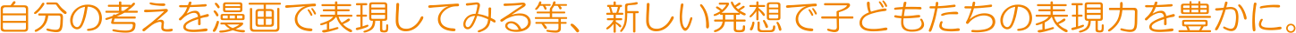 最近、書店に「漫画でよくわかるシリーズ」等の書籍が並んでいます。キャラクターがナビゲーターとなり図や絵を多く取り入れることで理解を促進しようというものです。しかし、私たちが取り組むコミック教材は、そういった補助教材以外にも、漫画そのものが持っている表現力・構成力に着目しています。例えば、言葉や感性が磨かれる幼少期から段階的に、簡単なコミックを読むだけでなく自ら作ってみることで、知らず知らずのうちに物語が作れる豊かな感性を身につけることができるよう、新たな教材の開発にも取り組んでいます。